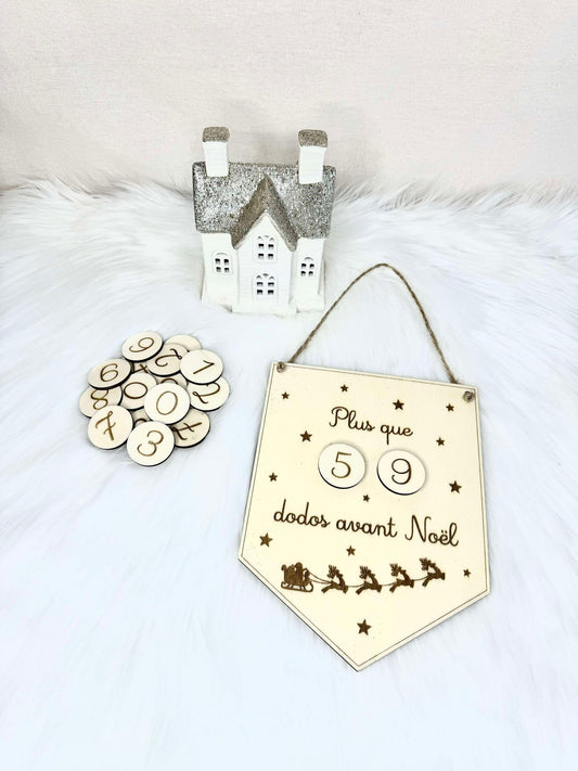 Pancarte fanion Compte à rebours de Noël en bois