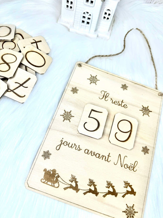 Pancarte compte à rebours de Noël en bois