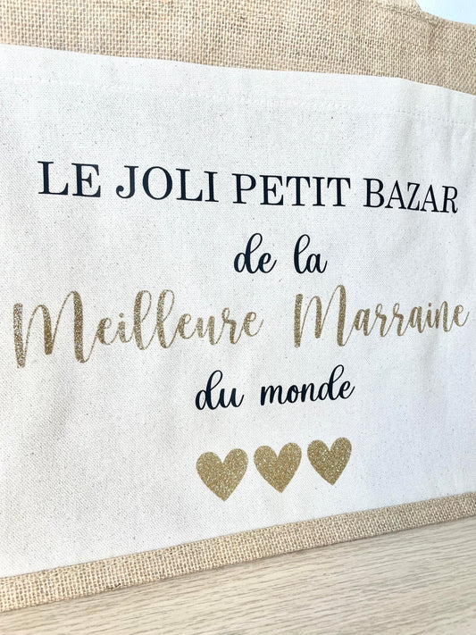 Grand sac en toile de jute Le joli petit bazar de la Meilleure Marraine du monde