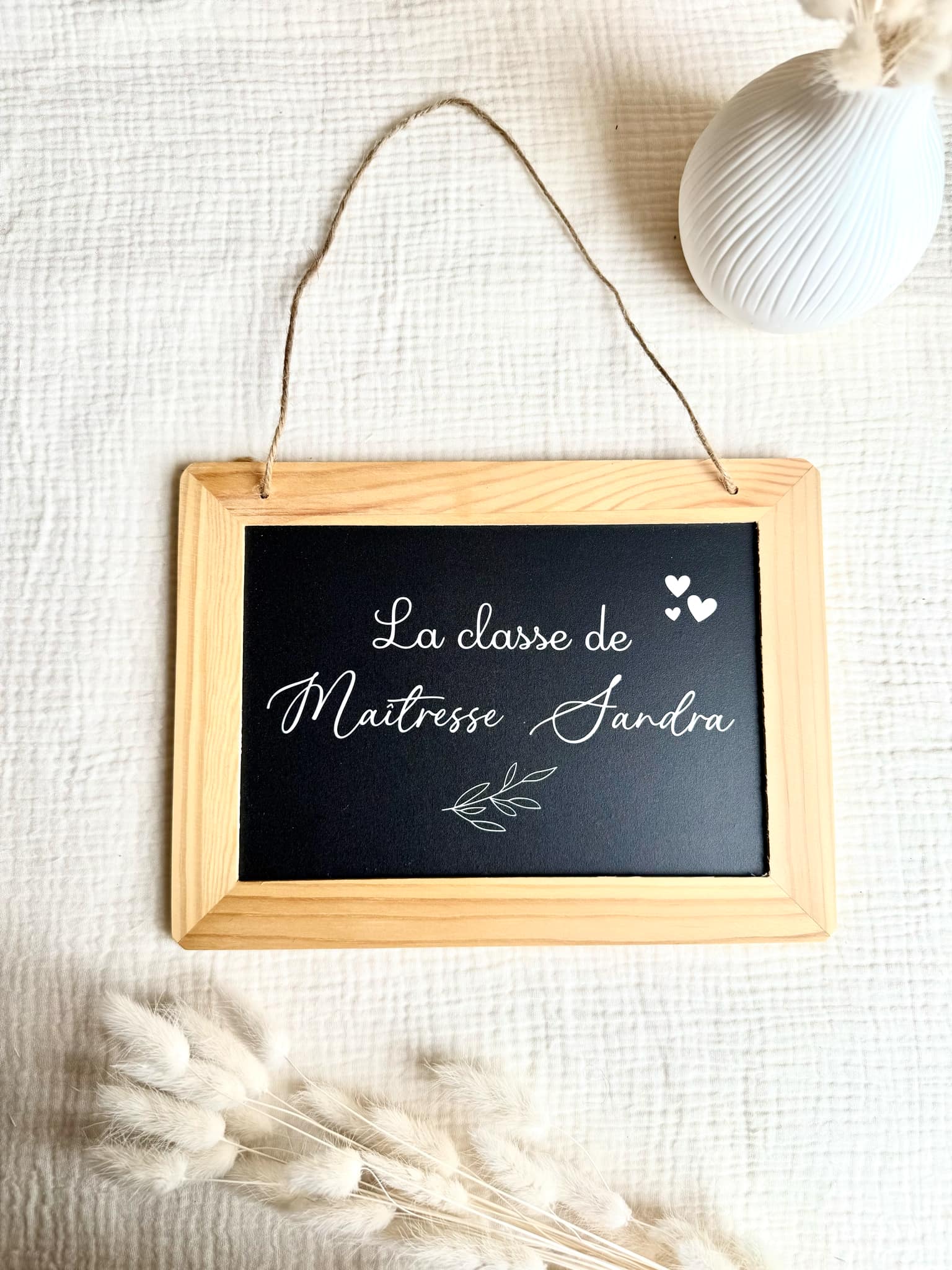 Magnifique ardoise à suspendre pour offrir à la maîtresse de votre enfant. C'est un cadeau qu'elle pourra mettre année après année dans sa classe. Avec ce cadeau, vous êtes sûr de lui faire plaisir...