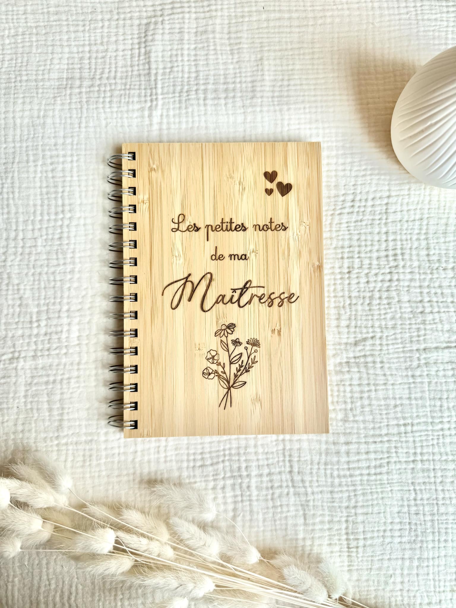 Voici un cadeau original qui sort de l'ordinaire. Un bloc note en bois gravé sur le dessus. Il est fait de feuilles recyclés à l'intérieur.