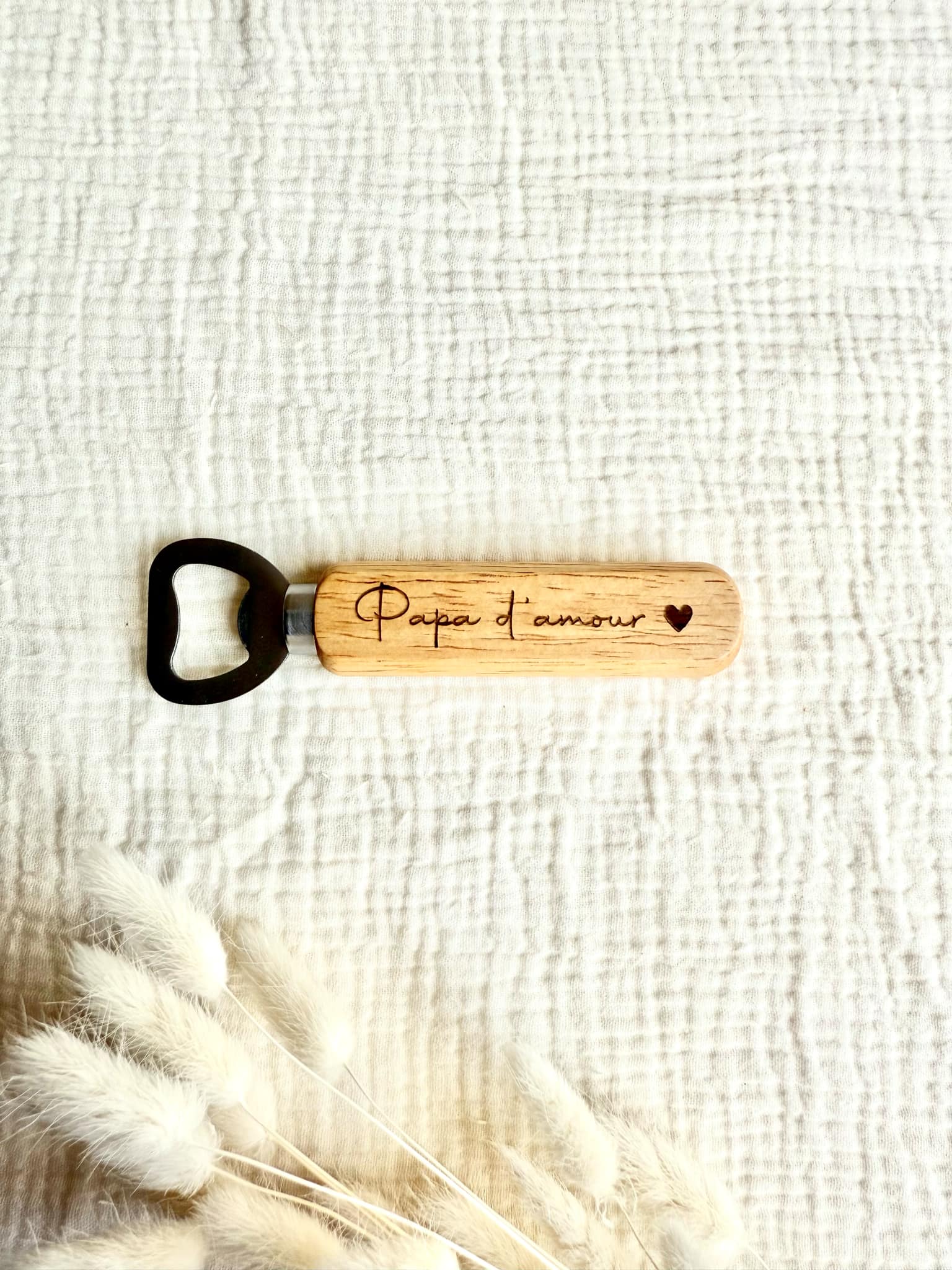 Décapsuleur à offrir à votre papy ou celui de votre enfant. L'inscription est gravé sur le bois.