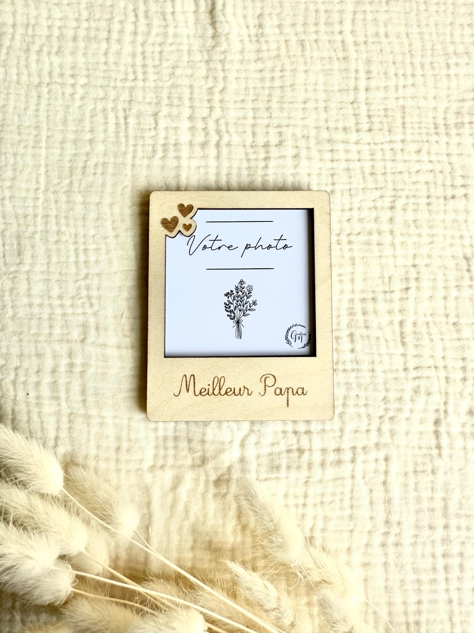 Joli magnet à offrir à l'occasion de la fête des papas. Le magnet est en bois, les écritures sont gravés dessus. Vous pouvez glisser une photo à l'intérieur du magnet, ce qui le rend encore plus personnalisé.