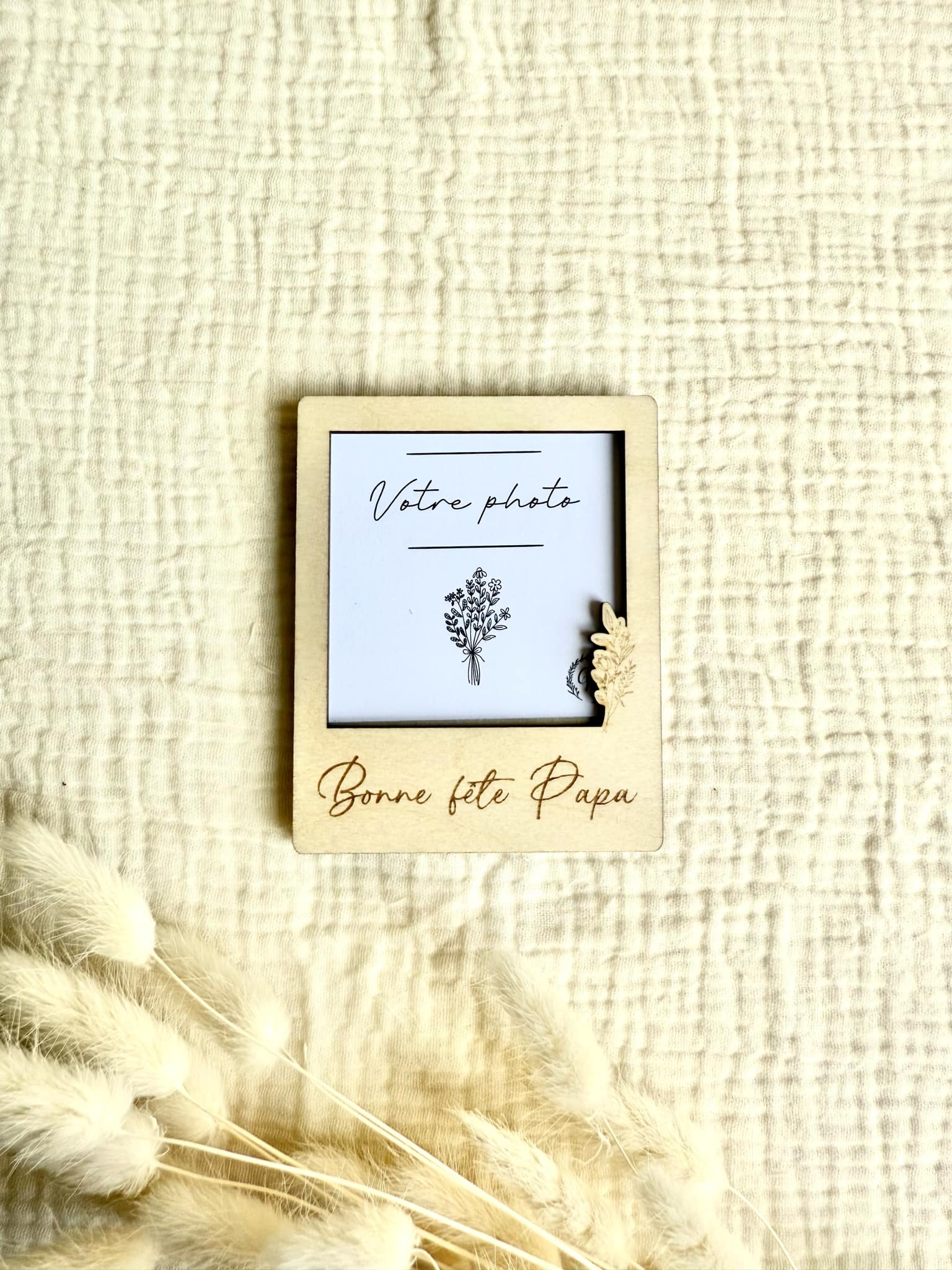 Joli magnet à offrir à l'occasion de la fête des papas. Le magnet est en bois, les écritures sont gravés dessus. Vous pouvez glisser une photo à l'intérieur du magnet, ce qui le rend encore plus personnalisé.