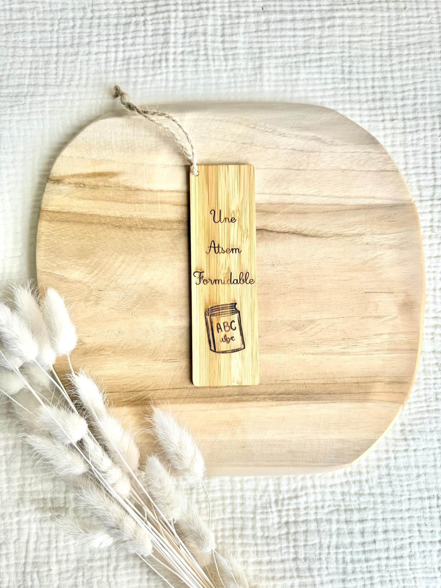 Marque page à offrir à l'ATSEM de votre enfant. Vous pouvez changer le texte, et ajouter le prénom de l'enfant si vous le souhaitez.