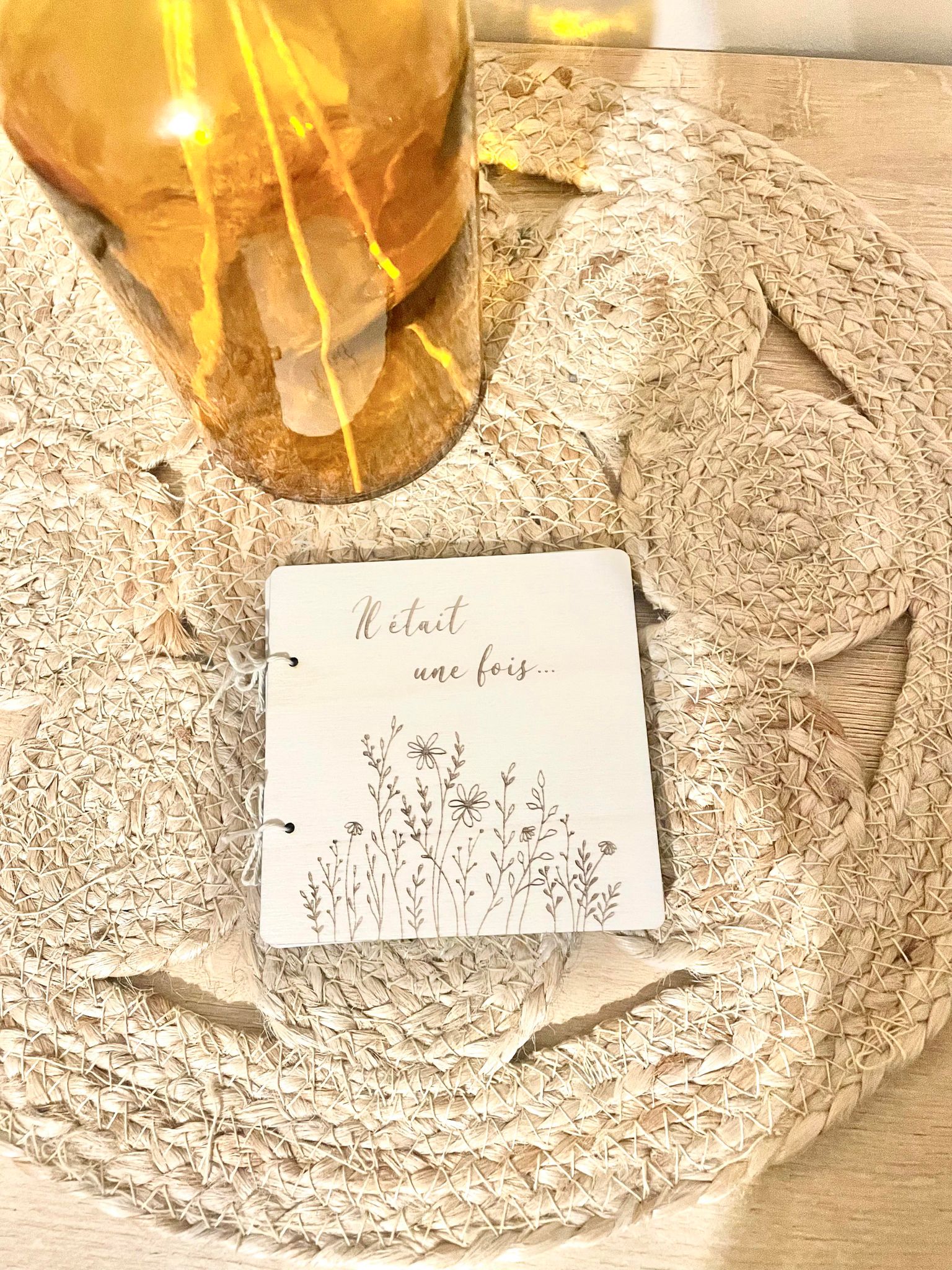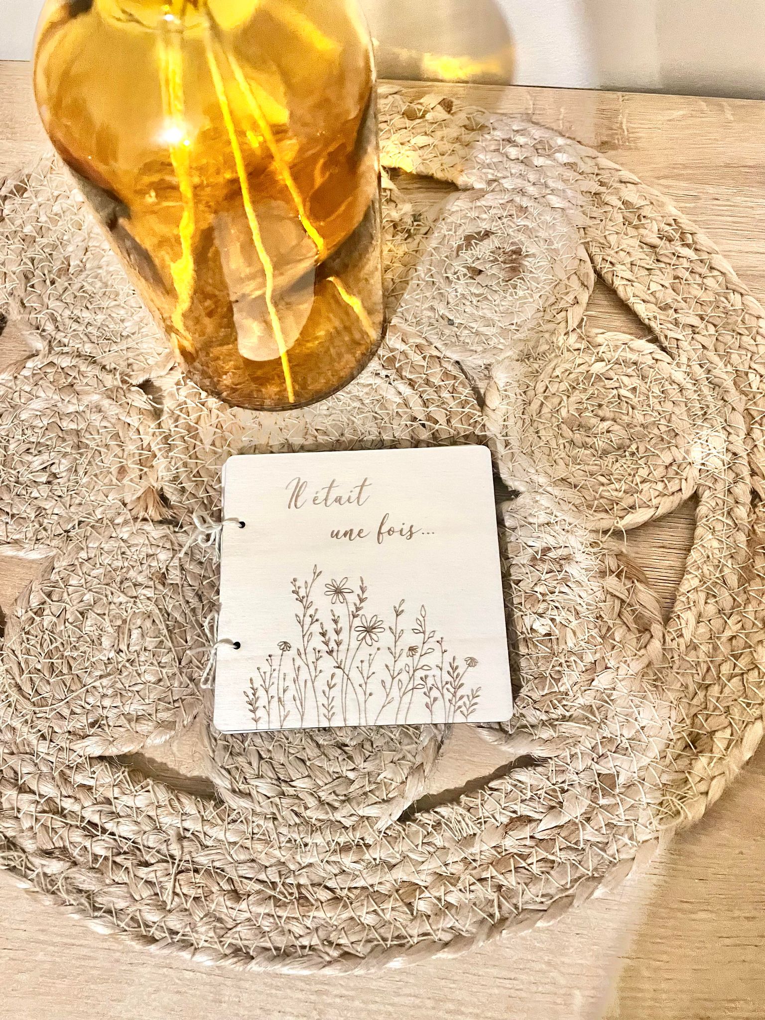 Magnifique petit livre en bois pour faire une jolie annonce à vos proches. Le petit livre est lié grâce à un nœud. C'est en ouvrant le petit livre que vos proches découvriront le message cacher à l'intérieur. Vous avez la possibilité de choisir la couleur du nœud (crème, rouge ou jute).