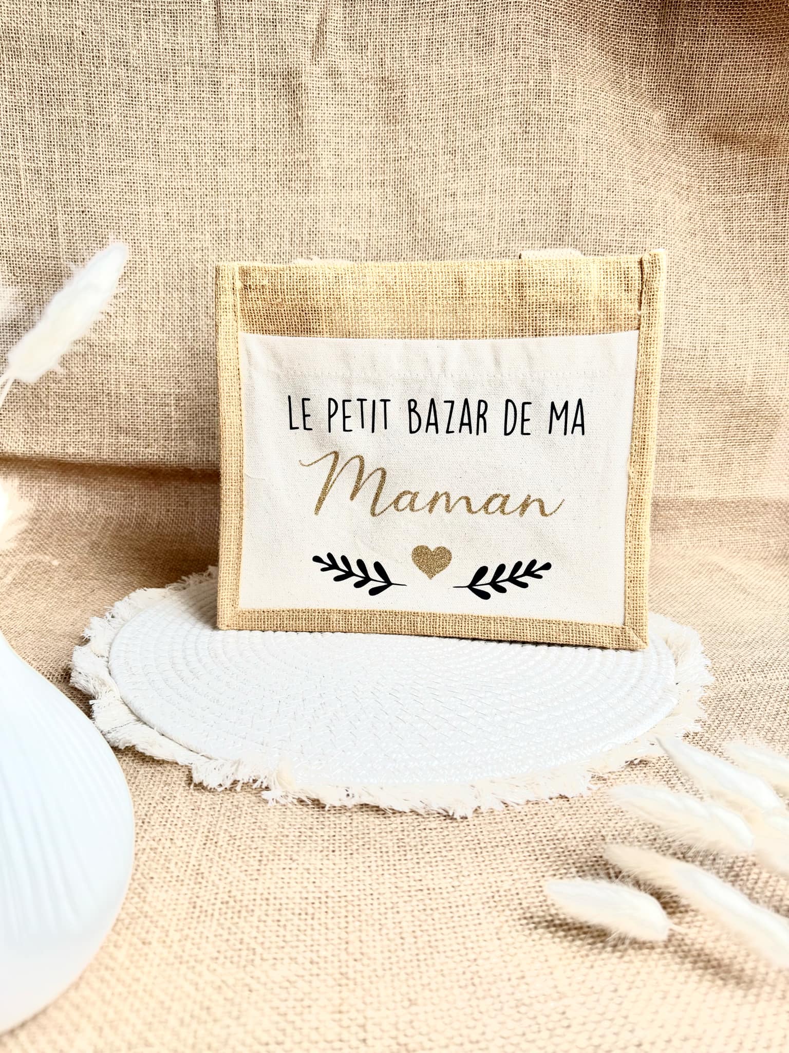 Petit sac en toile de jute Maman