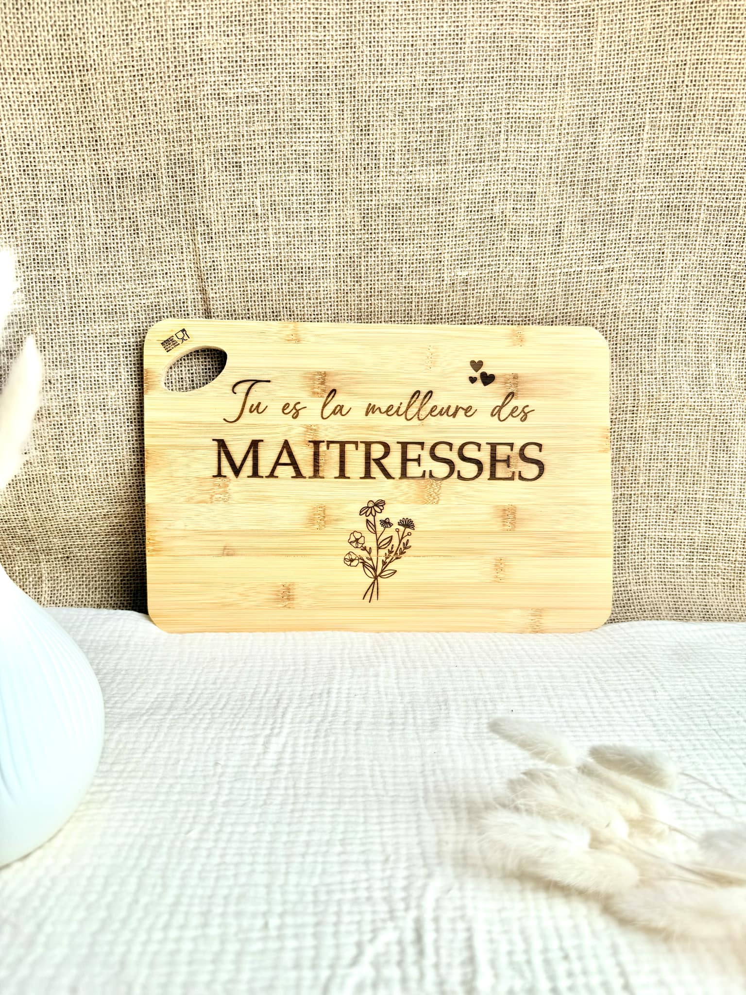 Magnifique planche à découper à offrir à la maîtresse de votre enfant. Un cadeau qui lui fera plaisir à coup sûr.