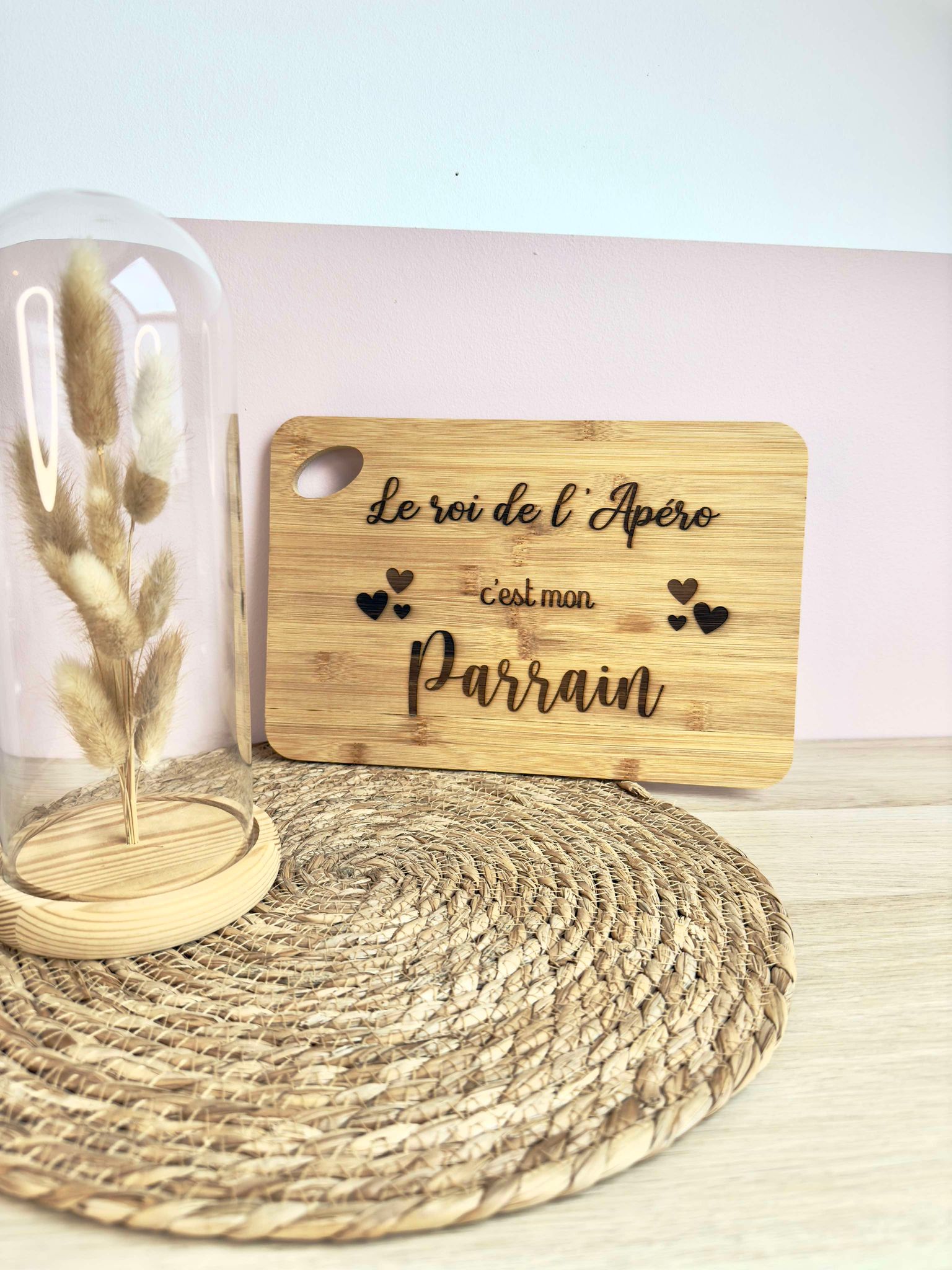 Magnifique planche à découper à offrir à votre parrain ou celui de votre enfant. Un cadeau qui lui fera plaisir à coup sûr.