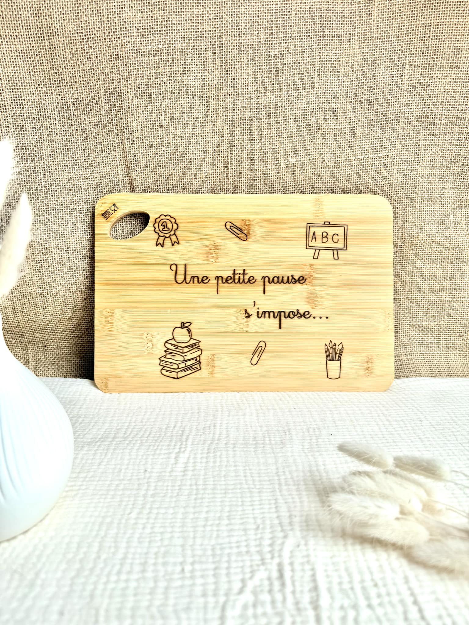 Magnifique planche à découper à offrir à la maîtresse ou au maître de votre enfant. Un cadeau qui lui fera plaisir à coup sûr.
