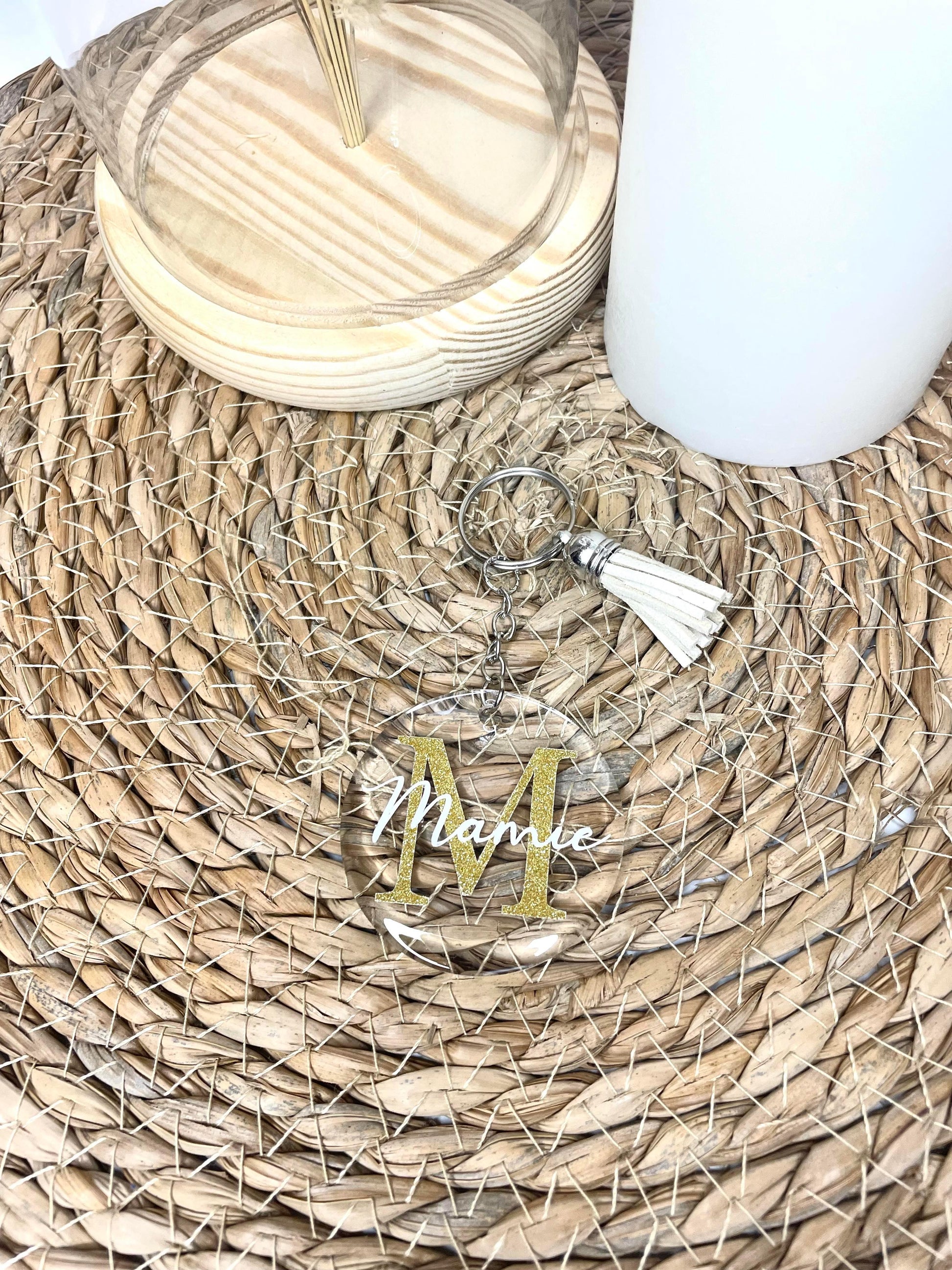 Joli porte clé en acrylique transparent pour les mamies. Le porte clé est protégé par de la résine UV.