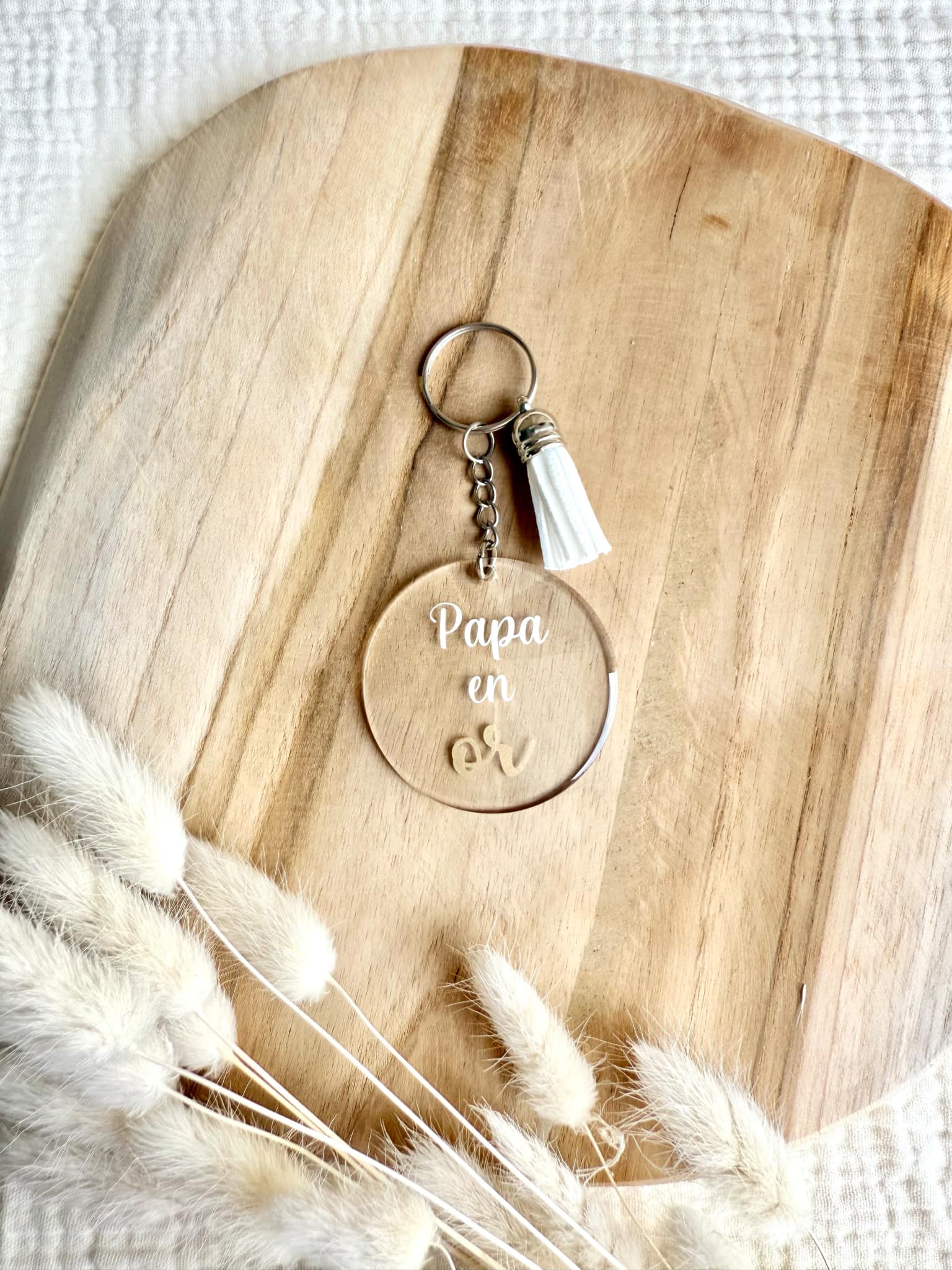 Joli porte clé en acrylique transparent pour les papas. Le porte clé est protégé par de la résine UV.