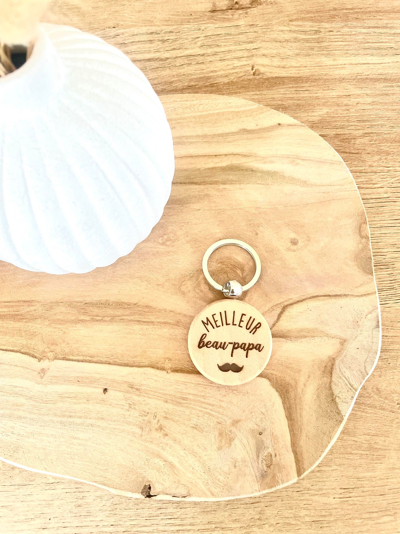 Porte clé rond bois Meilleur Beau-papa