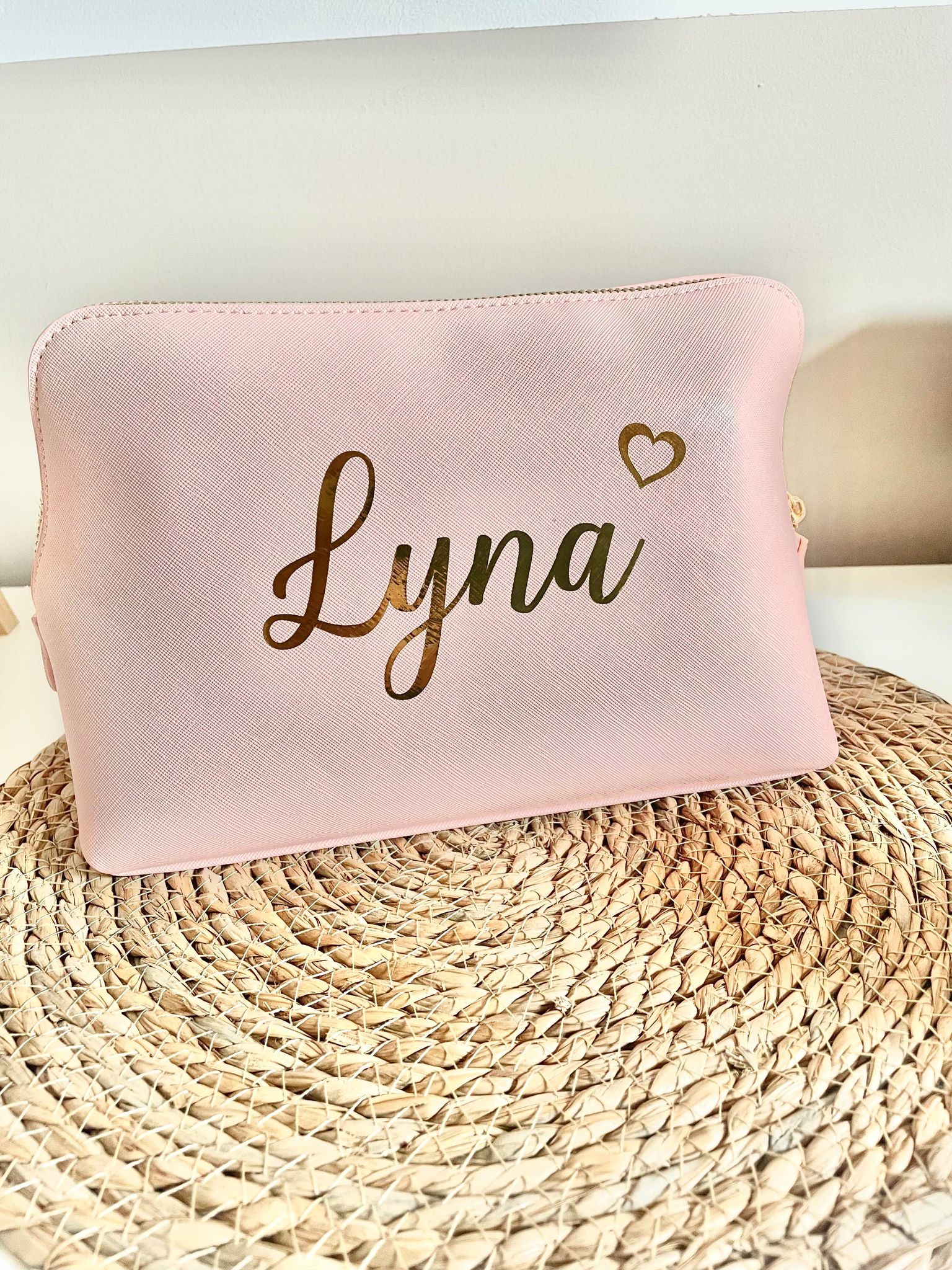 Jolie petite trousse en simili cuir rose à offrir ou à s'offrir.